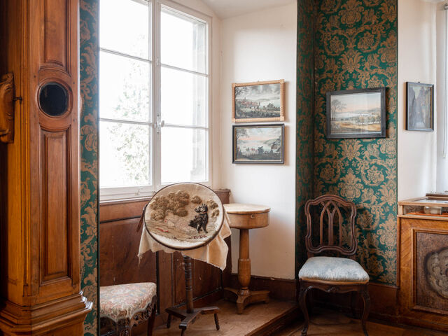Zur weiteren Ausstattung des Raums gehören ein Nähtisch aus Nussbaum (um 1830) und ein Stickrahmen mit einer angefangenen Arbeit sowie Ölgemälde, Aquarelle, Gouachen und Stiche aus dem 18. und 19. Jahrhundert. Sie zeigen Motive vom Bodensee, u. a. die Reichenau und den Rheinfall bei Schaffhausen, Konstanz, Überlingen und Stein am Rhein sowie die Seeg’frörne von 1830.