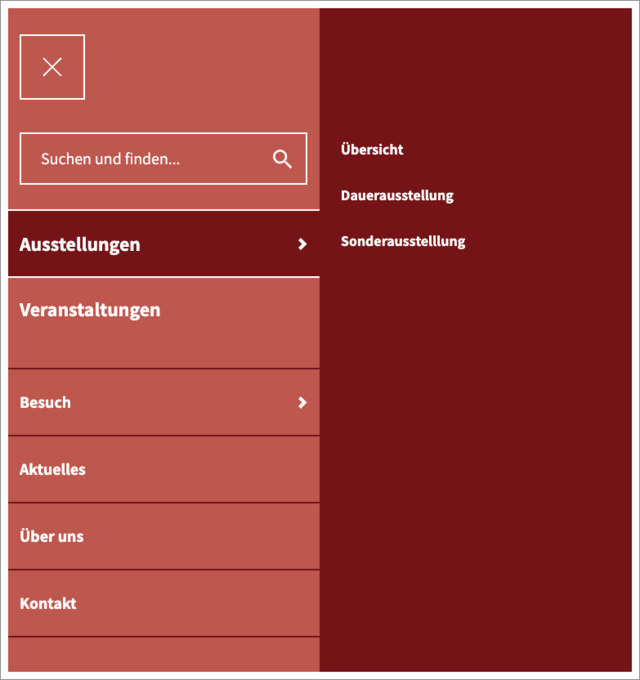 Im Menü finden Sie eine Liste mit allen Themen auf der Internet‐Seite.