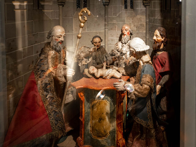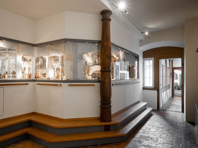 Ehemaliger Küchenraum mit Weihnachts- und sogenannten „Fastenkrippen“, panoramahaft eingebauten Darstellungen der Weihnachts- und Leidensgeschichte, sowie des ersten Pfingstfests. Die Figuren, bekleidete Gliederpuppen mit Köpfen, Händen und Füßen aus Holz, gehörten wahrscheinlich einmal dem Überlinger Franziskanerkloster; im Franziskanerorden hatte man den Krippendienst seit der Weihnacht von Greccio 1223 wohl stets gepflegt.
