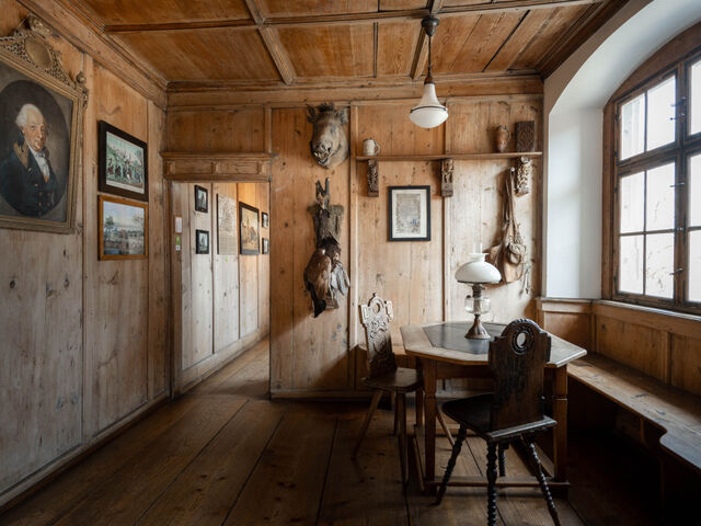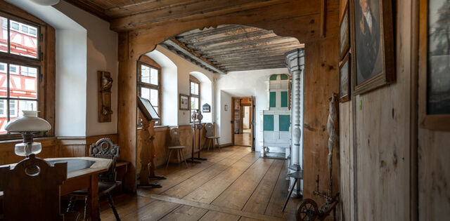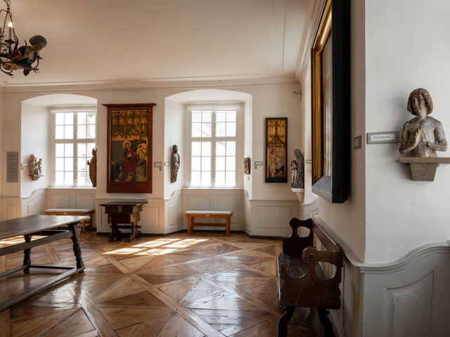Dieser Raum vermittelt eine Anmutung der Wohnkultur Überlinger Patrizier im 17. und 18. Jahrhundert. Neben einem Tabernakelsekretär des 18. Jahrhunderts sind ein barocker Kabinettschrank mit Intarsien und ein Betschemel ausgestellt. Dieser diente sowohl als Schränkchen wie als Kniebank.