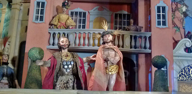 Große "Fastenkrippe" des 18. Jh., einst Besitz der Überlinger Familie Baur-Stadler. Darstellung der Leidensgeschichte in Einzelszenen, vom Abendmahl bis zur Kreuzigung, das Ganze um den Berg Kalvaria gruppiert.